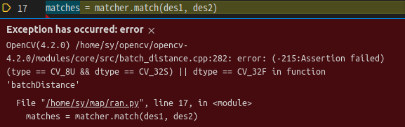 matches = matcher.match(des1, des2)