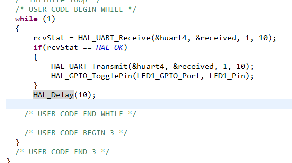 HAL_UART_Transmit(&huart4, &received, 1, 10);