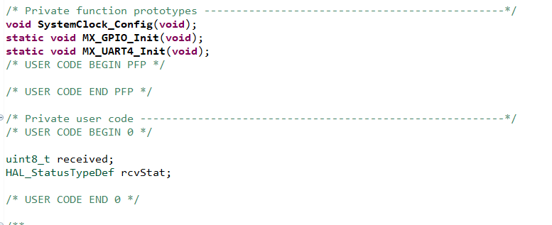 rcvStat = HAL_UART_Receive(&huart4, &received, 1, 10);